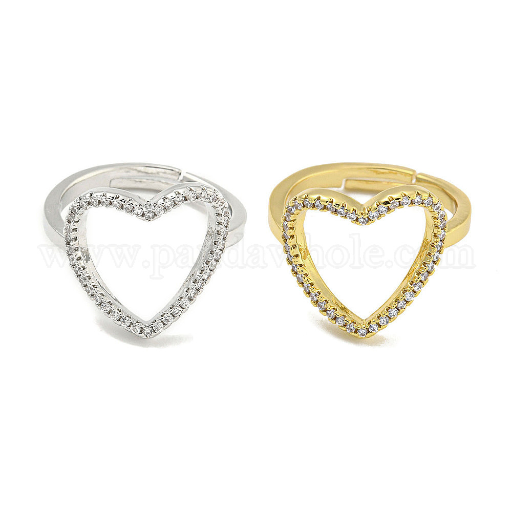 Регулируемые кольца в форме сердца из латуни с микро-паве и кубическим цирконием для женщин, без кадмия и без свинца, долговечный
