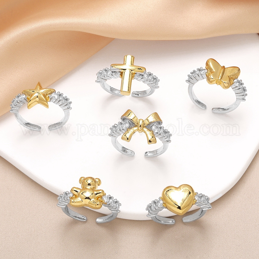 Открытые манжеты из латуни с микропаве и цирконием для женщин, платиной и золотом