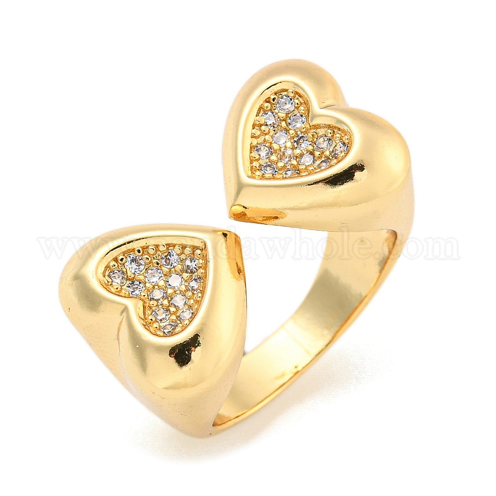 • Настоящее золото 16K Латунные кольца-манжеты с микро-паве и прозрачным фианитом в форме сердца для женщин, без кадмия и без свинца, реальный 16 k позолоченный, внутренний диаметр: 17 мм