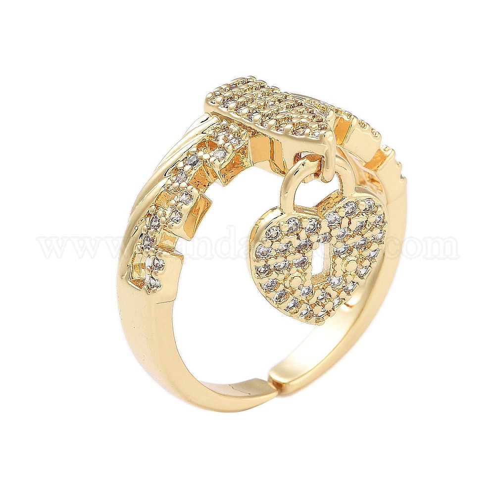 Навесной замок в форме сердца, латунный микропаве с кубическим цирконием, открытые манжеты, кольца для женщин, без кадмия и без свинца, долговечный