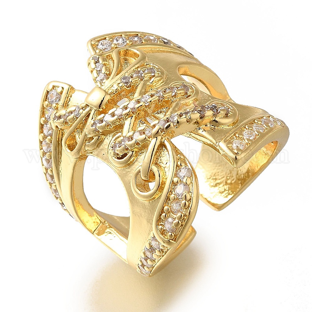 Покрытие стойки, форма шнурков, латунь, прозрачный кубический цирконий, широко открытые манжеты, кольца, без кадмия и без свинца, долговечный, для женщин