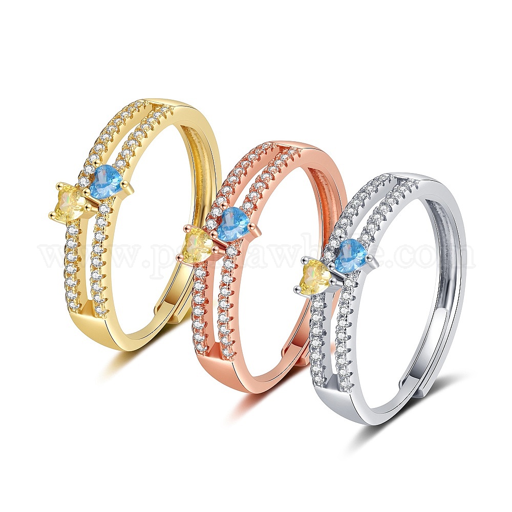 Регулируемые кольца из латуни с микропаве и цирконием для женщин