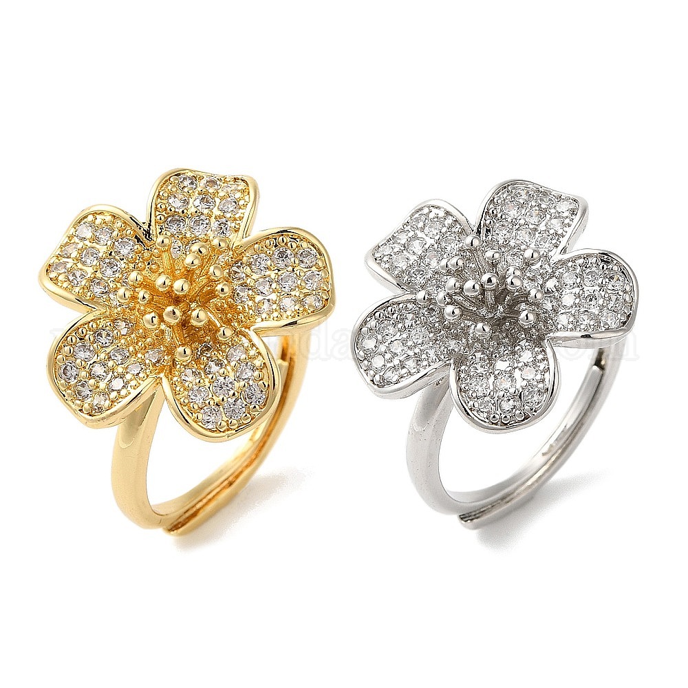 Покрытие стойки цветок латунь микро паве регулируемые кольца из прозрачного кубического циркония, долговечный, без свинца и без кадмия