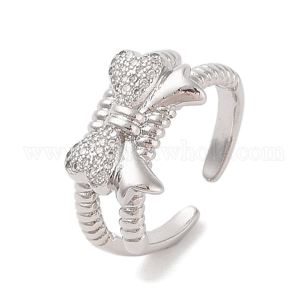 Открытые манжеты с бантом из латуни микро паве с прозрачным фианитом, для женщин