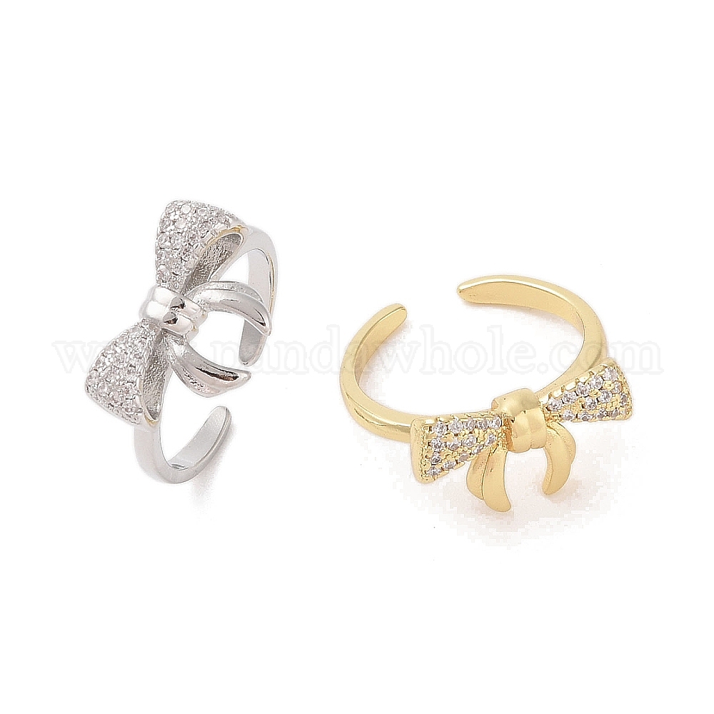 Открытые манжеты с бантом из латуни микро паве с прозрачным фианитом, для женщин