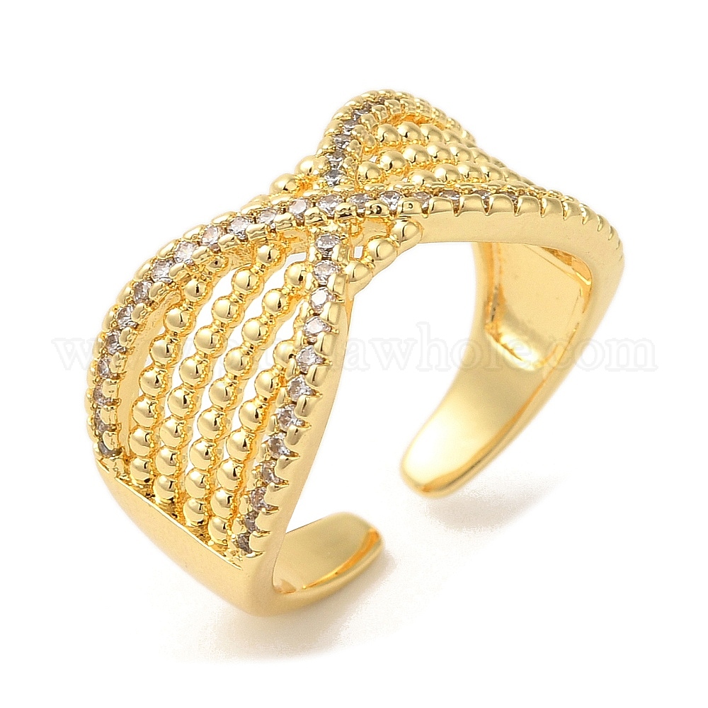 • Настоящее золото 18K Открытые манжеты из латуни Infinity с микропаве и кубическим цирконием, кольцо крест-накрест для женщин, без свинца и без кадмия, реальный 18 k позолоченный, 11 мм, регулируемый