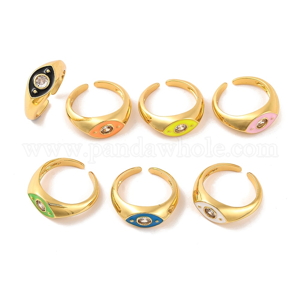 Открытые манжеты из латуни с микропаве и прозрачным фианитом, кольцо с глазной эмалью для женщин, без свинца и без кадмия, реальный 18 k позолоченный