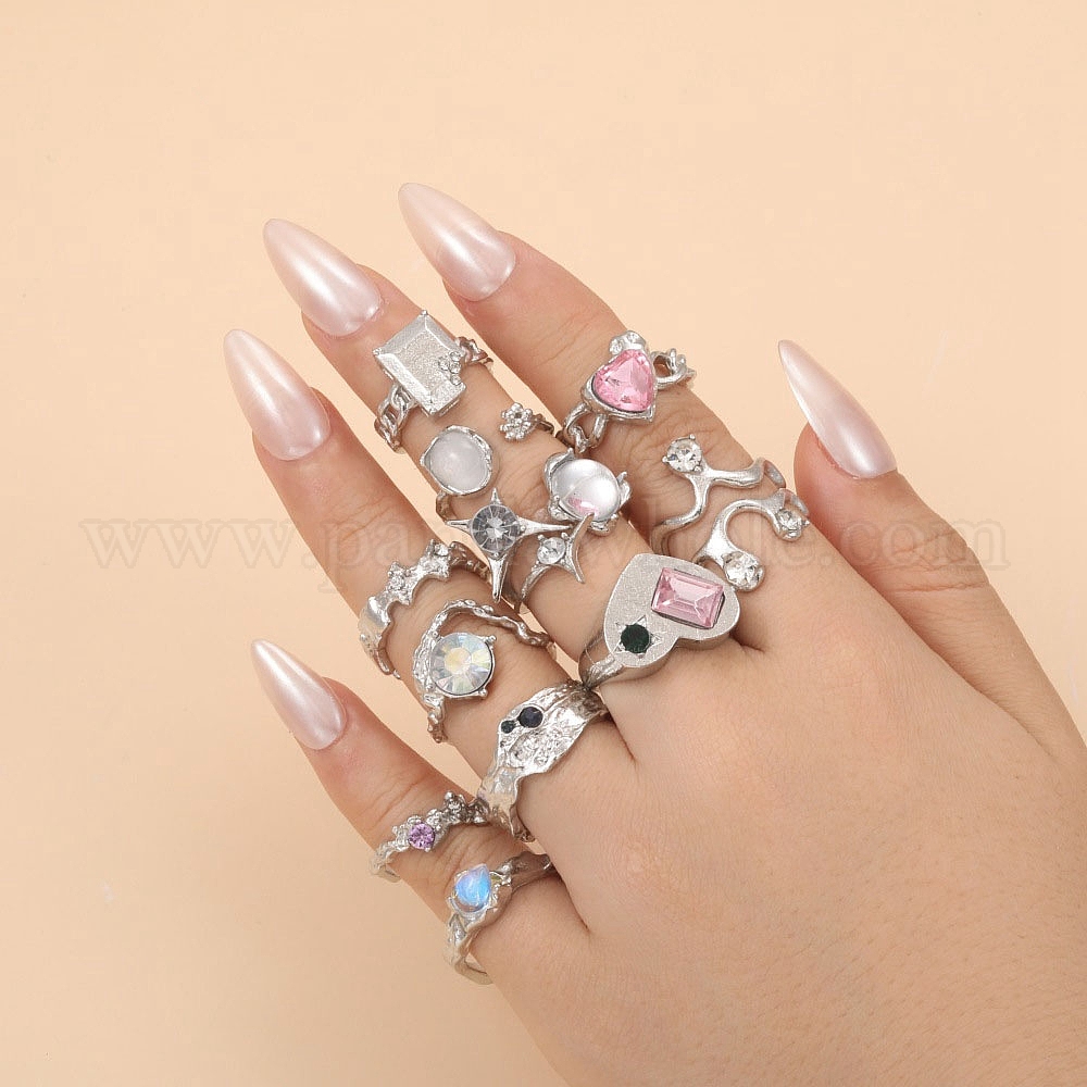 11шт. Кольца-манжеты из сплава с микропаве из кубического циркония для женщин, кольцо-солитер, разнообразные