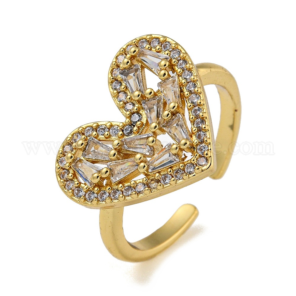 Открытые манжеты для женщин из латуни с микро-паве в форме сердца и прозрачным цирконием