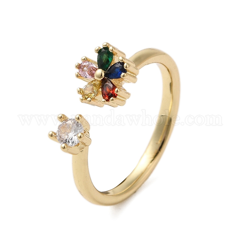 Открытые манжеты из латуни с микропаве и цирконием для женщин, без кадмия, без никеля и без свинца, цветок