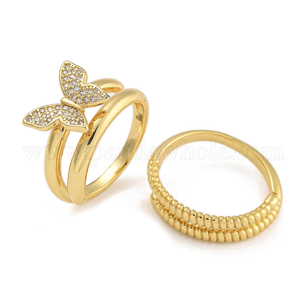 2 шт 2 стили латунные микропаве кубический цирконий регулируемые кольца для женщин, бабочка/двойной слой