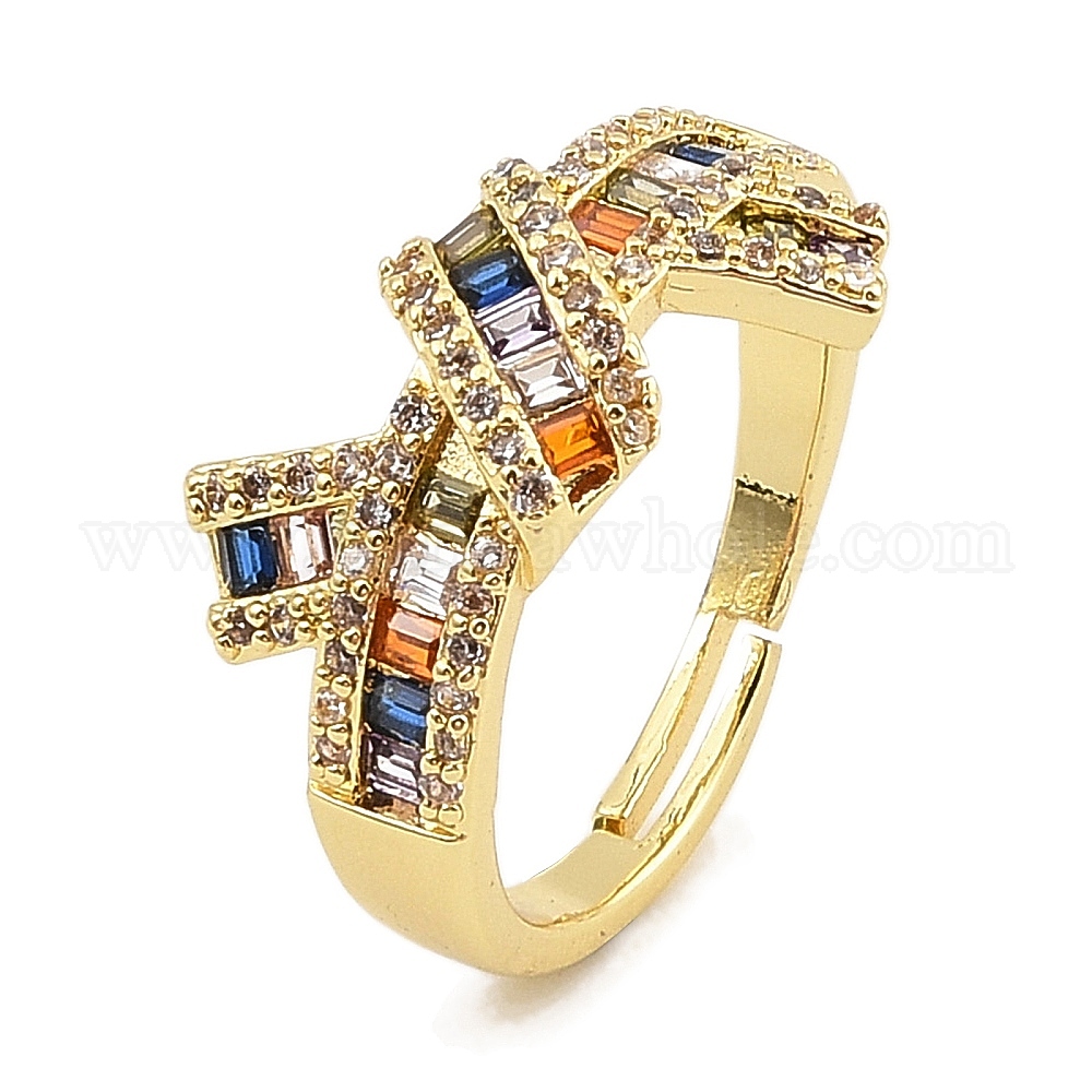 • Настоящее золото 18K Регулируемая стойка покрытие латунь микро паве кубический цирконий кольца для женщин, со стеклом, без кадмия, без никеля и без свинца, твист, реальный 18 k позолоченный, 14 мм, внутренний диаметр: 18 мм