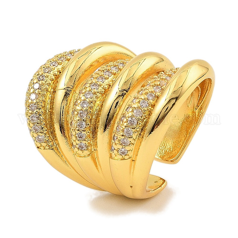 • Настоящее золото 18K Латунные микро проложить манжеты кольца кубического циркония, широкие кольца для женщин, без кадмия, без никеля и без свинца, реальный 18 k позолоченный, 29 мм, внутренний диаметр: 18 мм