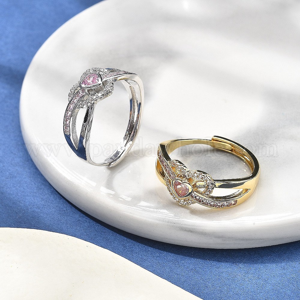 Регулируемые кольца для женщин с микропаве из латуни и кубическими цирконами, сердце