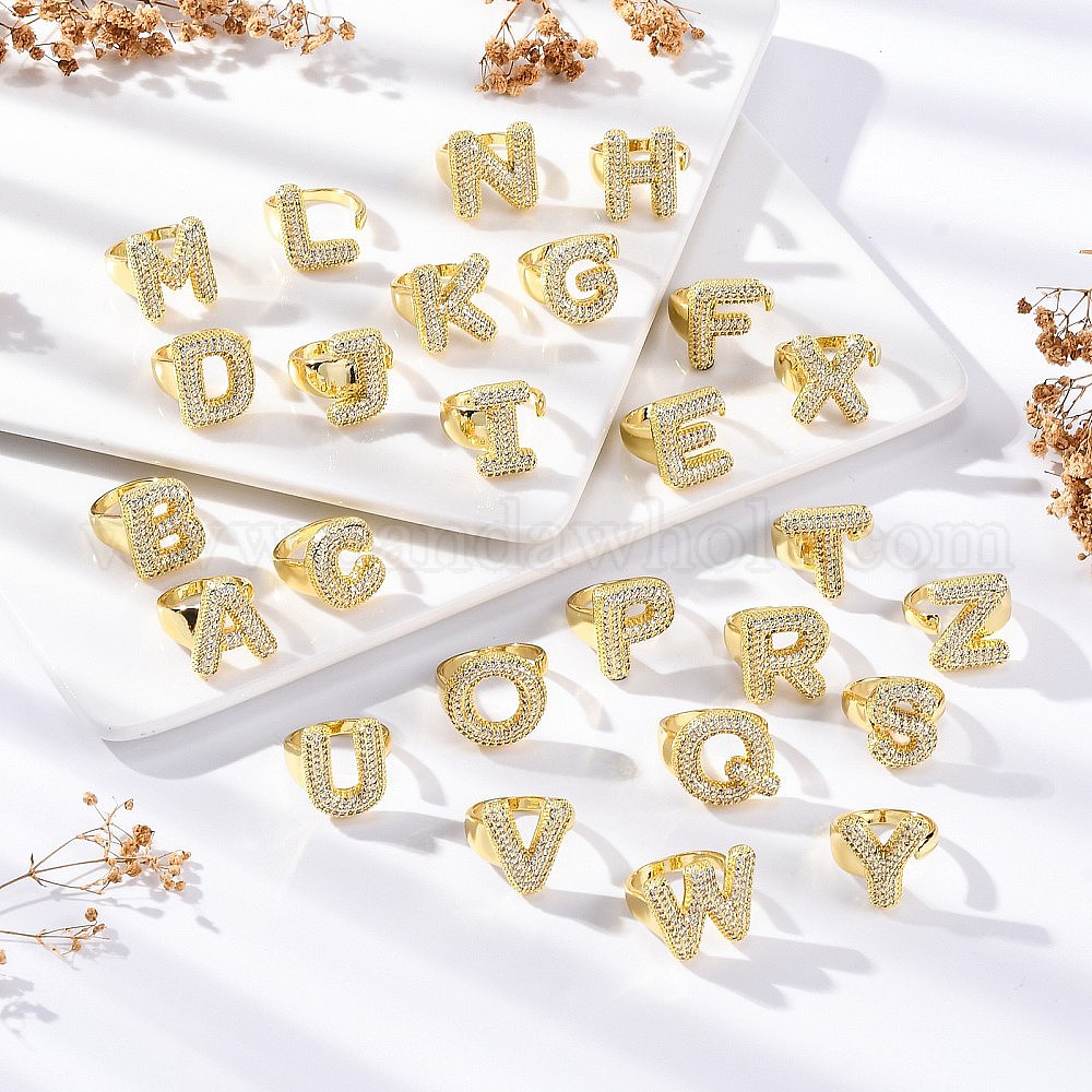 Кольца-манжеты для пальцев с покрытием из латуни с микропаве из прозрачного кубического циркония для женщин, долговечный, реальный 18 k позолоченный, Письмо ~ Z