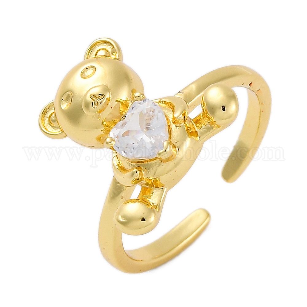 Кольца-манжеты для пальцев с покрытием из латуни с микропаве из прозрачного кубического циркония для женщин, долговечный, нести с сердцем
