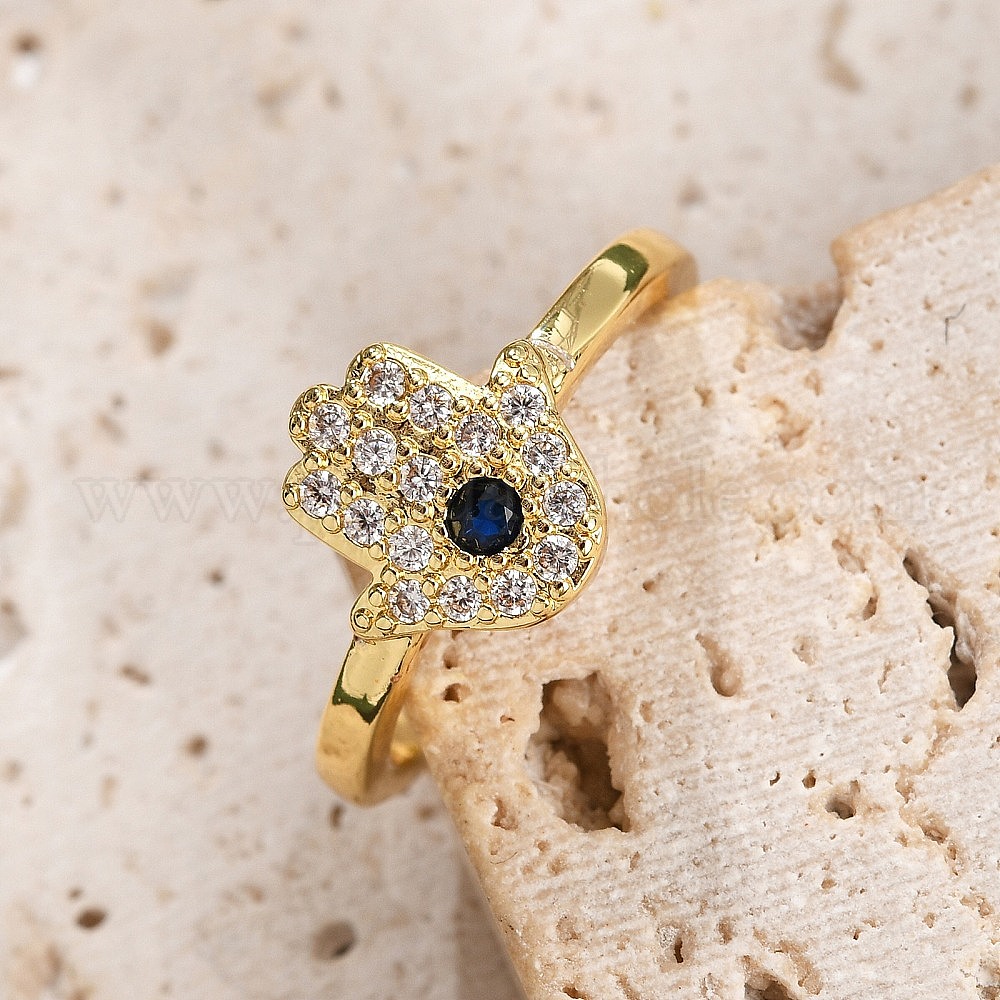 Кольца-манжеты для женщин с открытыми пальцами из латуни с микропаве из кубического циркония, долговечный, хамса рука