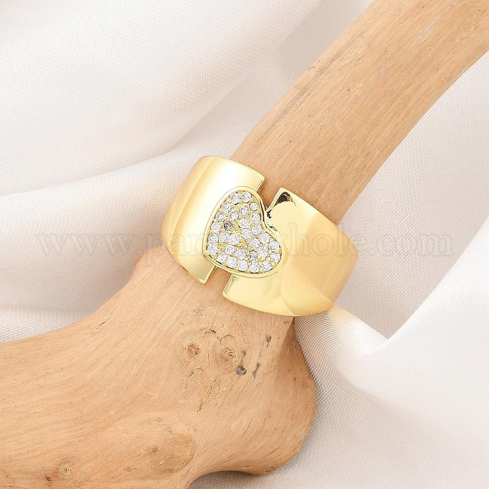 Кольца-манжеты из латуни с микро-паве и прозрачным циркониевым покрытием для женщин, долговечный, без кадмия и без свинца, сердце