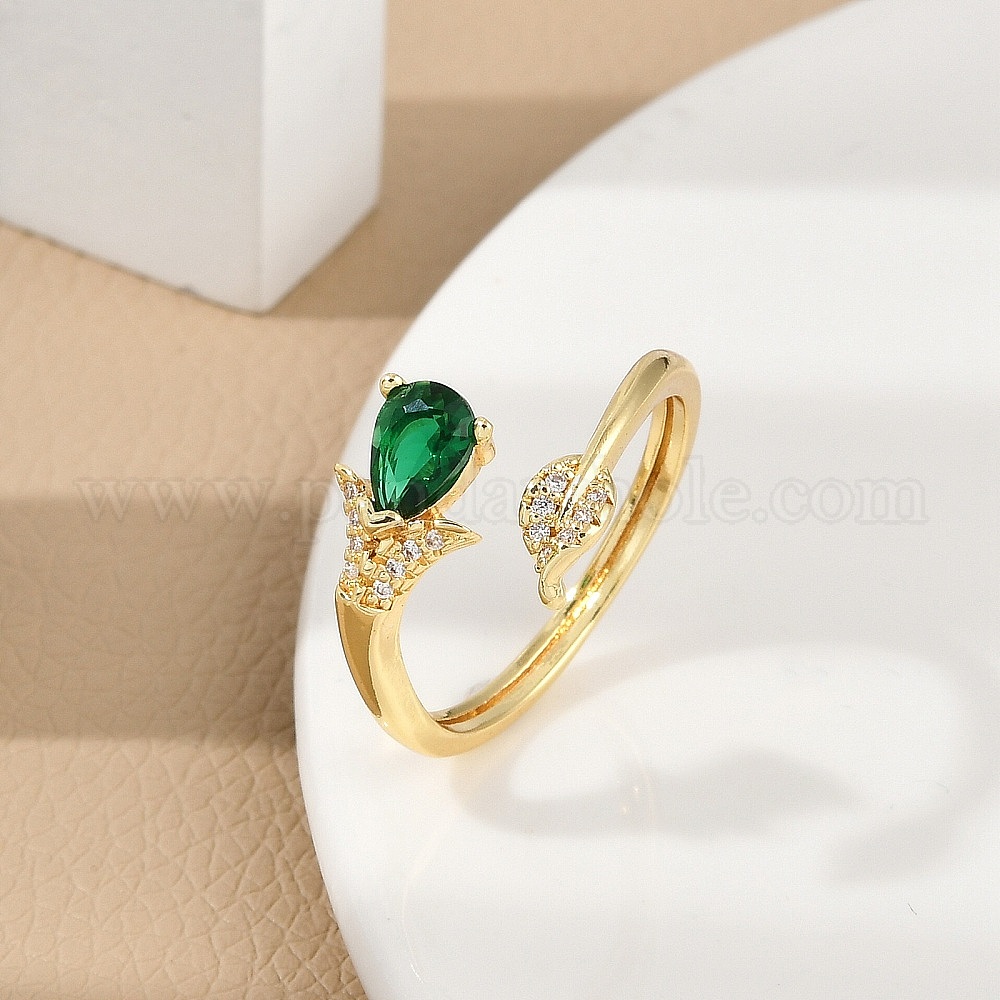 • Настоящее золото 18K Кольца-манжеты из листовой латуни с микропаве из кубического циркония для женщин, долговечный, без кадмия и без свинца, реальный 18 k позолоченный, размер США 9 3/4 (19.5 мм)