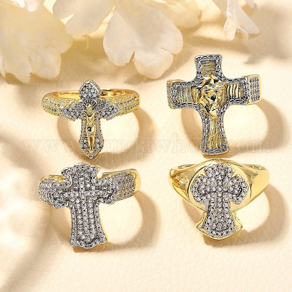 Латунные кольца из манжеты с прозрачным цирконием, крестовые кольца для женщин