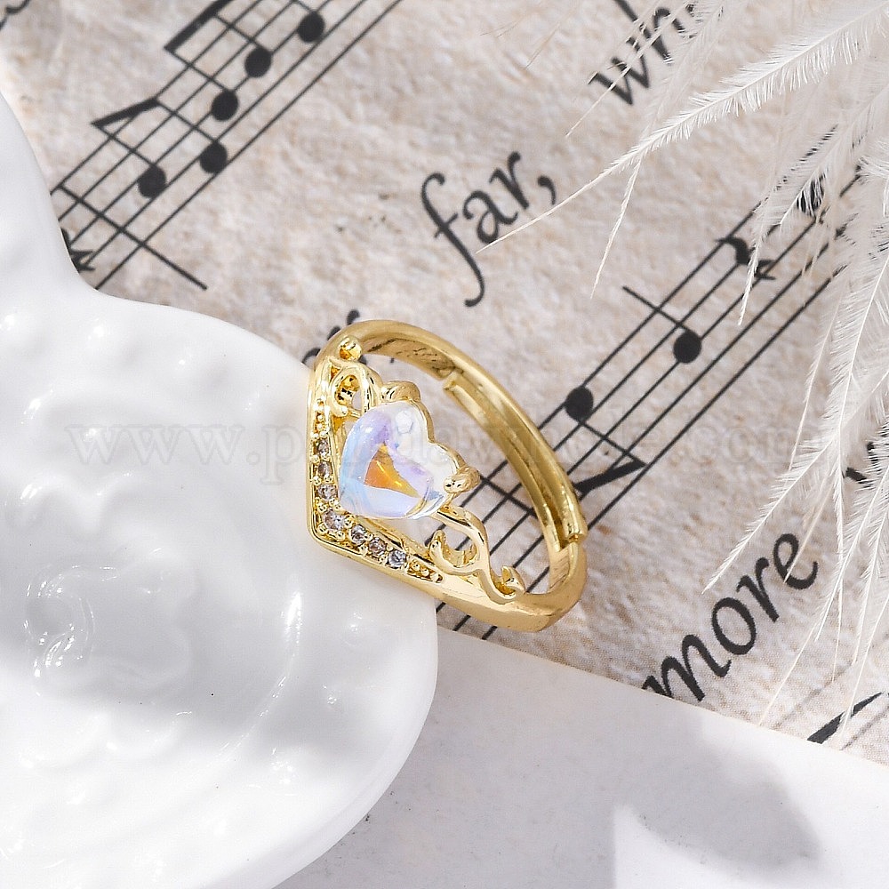 Кольца-манжеты из латуни с микропаве, прозрачные кубические циркония, кольца в форме сердца для женщин, cmолой, долговечный, стойки покрытие, без свинца и без кадмия