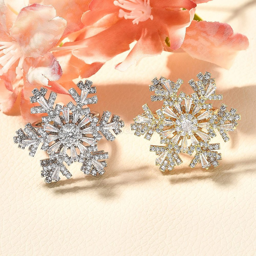 Снежинка вращающиеся открытые манжеты кольца для женщин, латунные кольца-спиннеры с микро-паве и прозрачным кубическим цирконием
