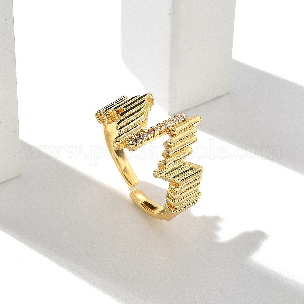 • Настоящее золото 18K Кольца-манжеты с микропаве из латуни и прозрачными кубическими цирконами для женщин, без кадмия, без никеля и без свинца, придерживаться, реальный 18 k позолоченный, регулируемый