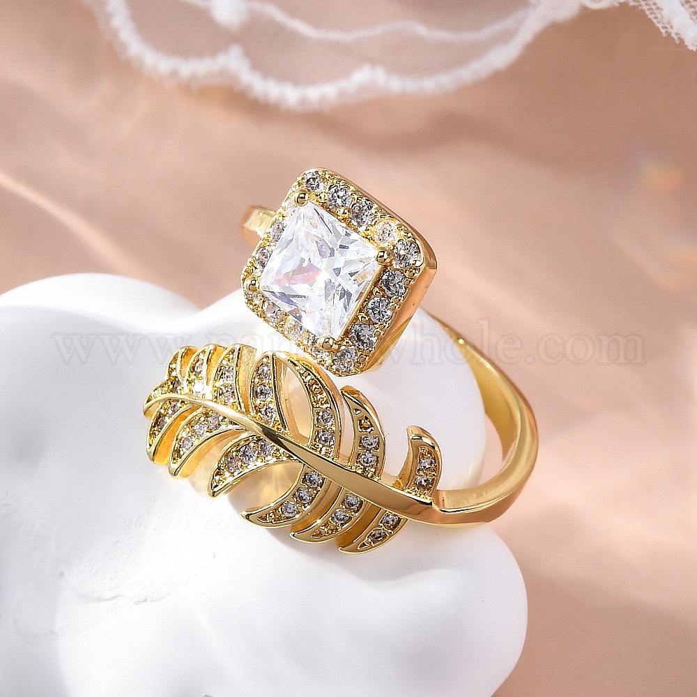 Латунные кольца-манжеты с микропаве и прозрачным цирконием для женщин, лист и квадрат