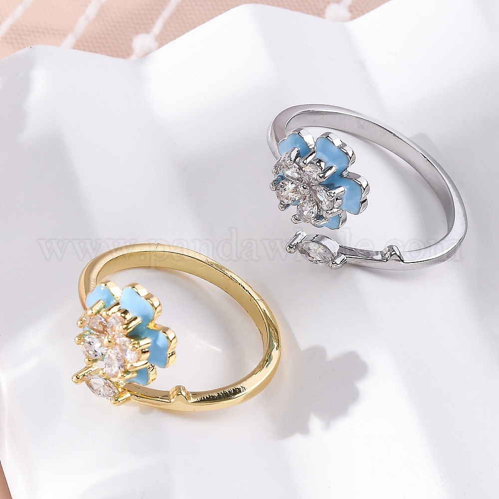 Латунные кольца-манжеты с микропаве и прозрачным цирконием для женщин, цветок, с эмалью