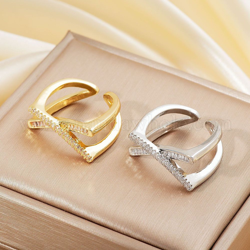 Кольца-манжеты в стиле хип-хоп из латуни с микропаве из прозрачных кубических цирконий для женщин