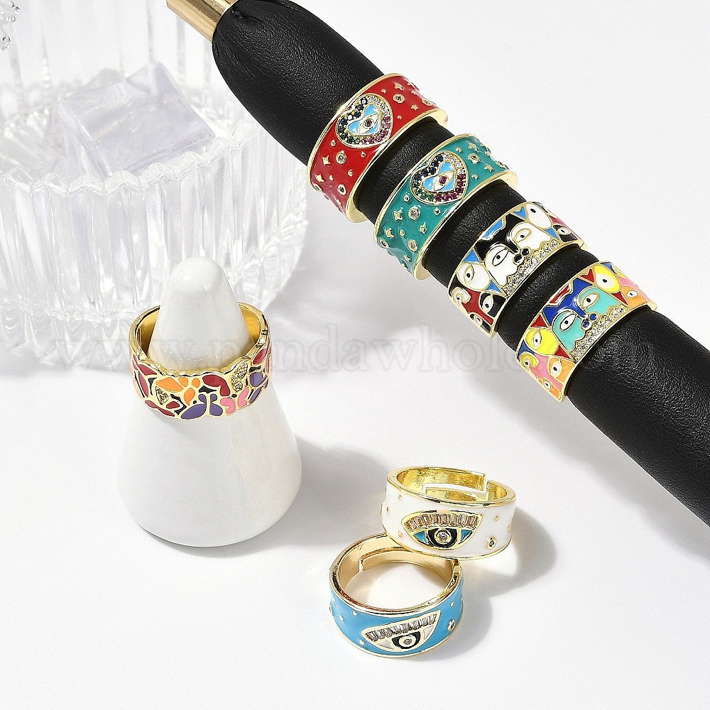 Кольца-манжеты из латуни с микропаве из кубического циркония и эмалью для женщин, без кадмия, без никеля и без свинца, реальный 18 k позолоченный