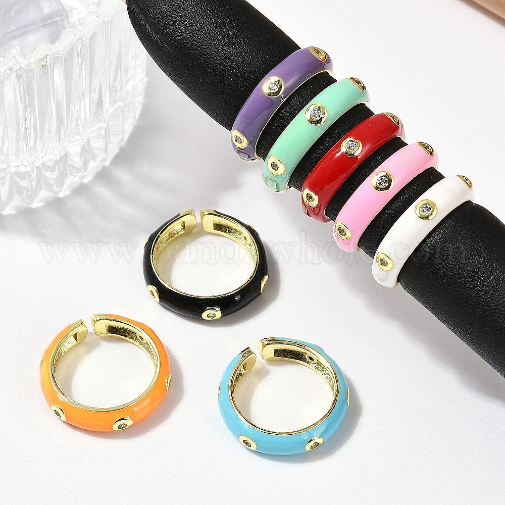 Кольца-манжеты из латуни с микропаве из прозрачного кубического циркония и эмалью для женщин, без кадмия, без никеля и без свинца, реальный 18 k позолоченный