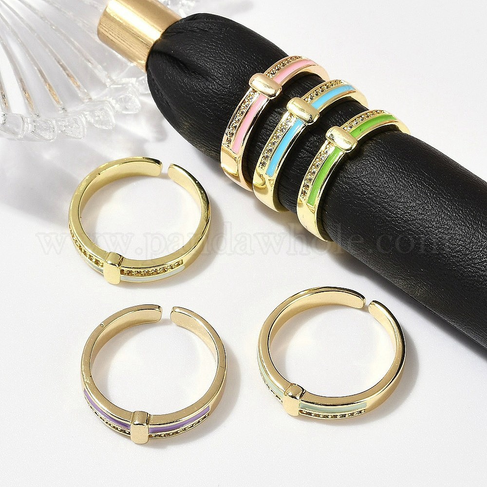 Кольца-манжеты из латуни с микропаве из прозрачного кубического циркония и эмалью для женщин, без кадмия, без никеля и без свинца, реальный 18 k позолоченный