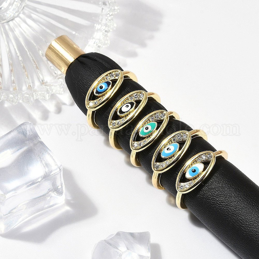 Кольца для женщин с эмалью из прозрачной латуни с микропаве из кубического циркония, без кадмия, без никеля и без свинца, овал с сглаза, реальный 18 k позолоченный
