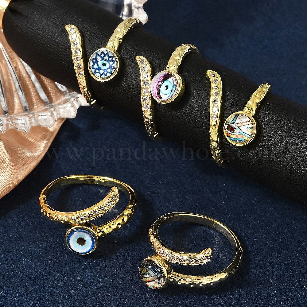 Кольца-манжеты из латуни с микропаве из прозрачного кубического циркония и эмалью для женщин, плоские круглые с глаз, со стеклом, без кадмия, без никеля и без свинца, реальный 18 k позолоченный