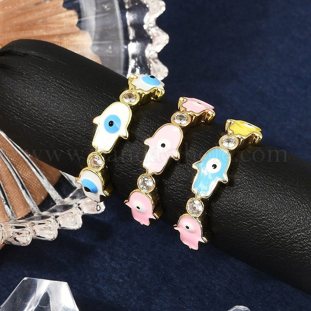 Кольца-манжеты из латуни с микропаве из прозрачного кубического циркония и эмалью для женщин, без кадмия, без никеля и без свинца, Хамса руку с дурным глазом, реальный 18 k позолоченный (031824)