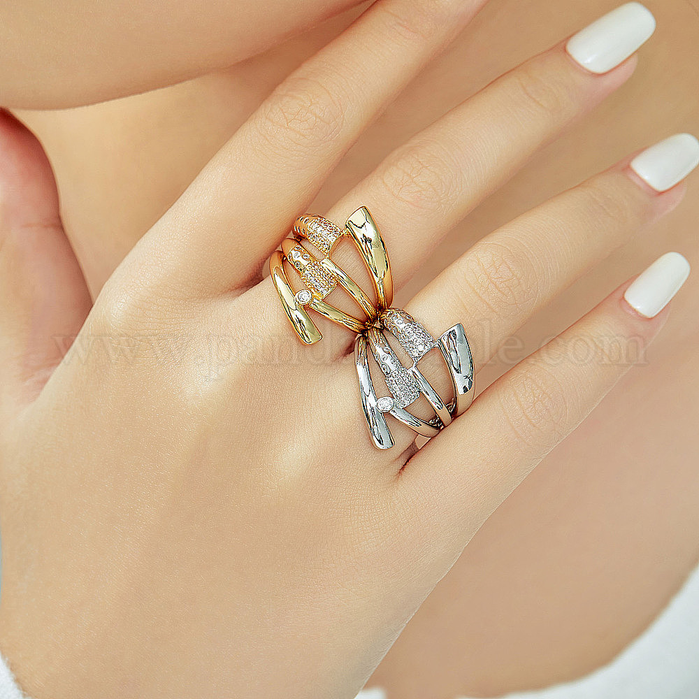Элегантные спиральные полосатые латунные кольца-манжеты с кубическим цирконием, идеальный подарок для дам, повседневная одежда