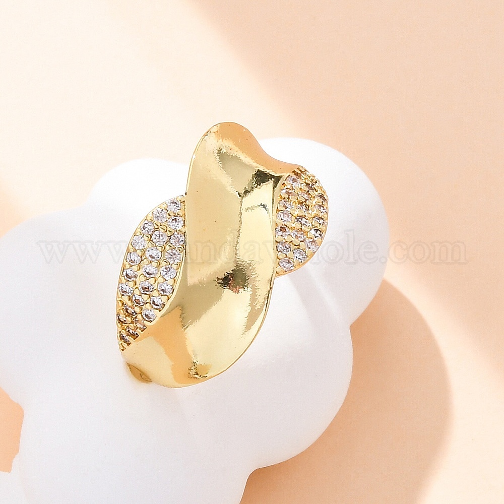 Латунные кольца-манжеты с микропаве и прозрачным цирконием для женщин, стойки покрытие, без кадмия и без свинца, прочное покрытие