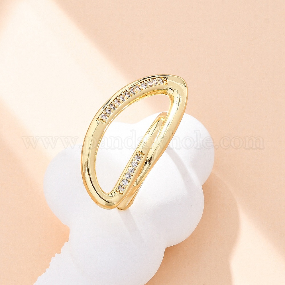 Латунные кольца-манжеты с микропаве и прозрачным цирконием для женщин, овальные, стойки покрытие, без кадмия и без свинца, прочное покрытие