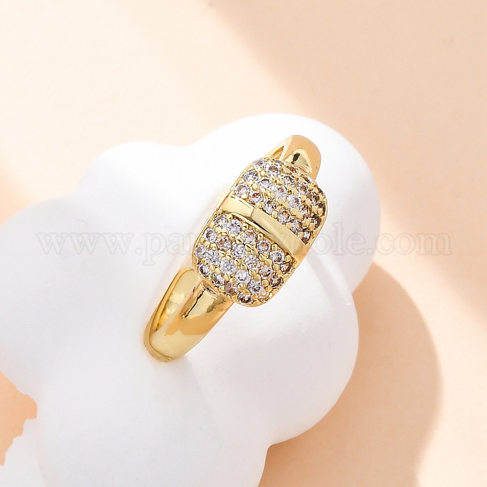 Латунные кольца-манжеты с микропаве и прозрачным цирконием для женщин, прямоугольные, стойки покрытие, без кадмия и без свинца, прочное покрытие