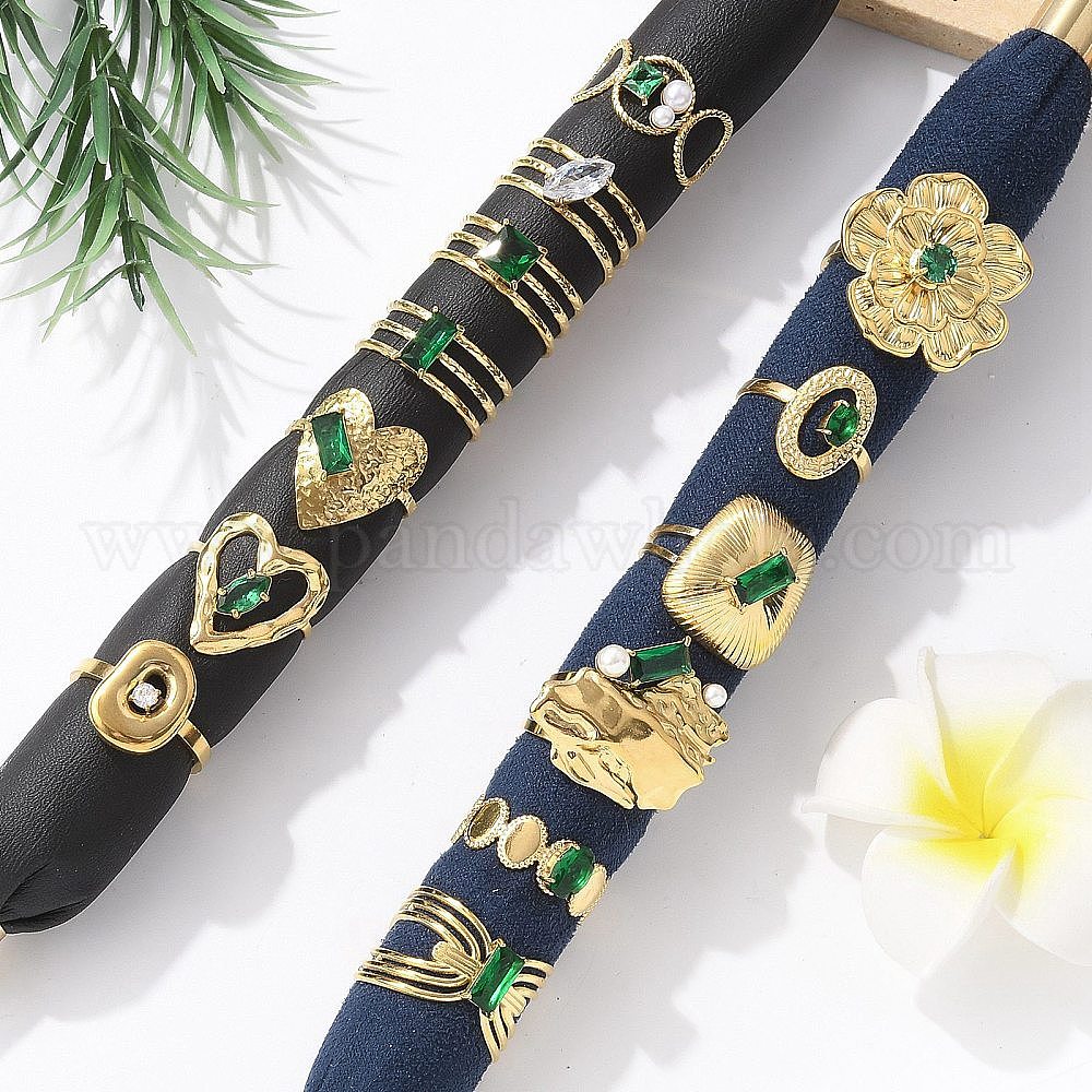 • Настоящее золото 18K 304 из нержавеющей стали Манжета кольца для женщин, цветок, с кубического циркония, реальный 18 k позолоченный, 26.5x26 мм, внутренний диаметр: 18.5 мм