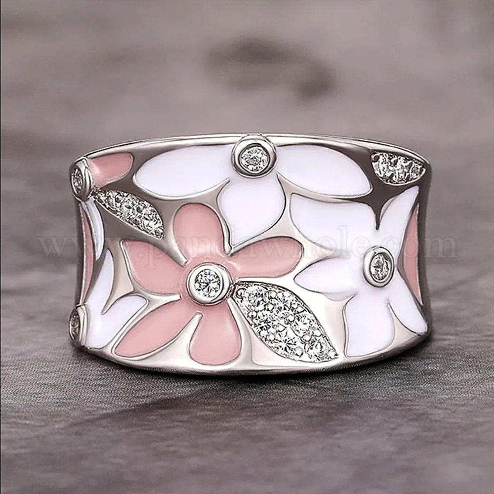 Эмали сплава кольца, широкие кольца для женщин, цветок, с микро проложить кубического циркония