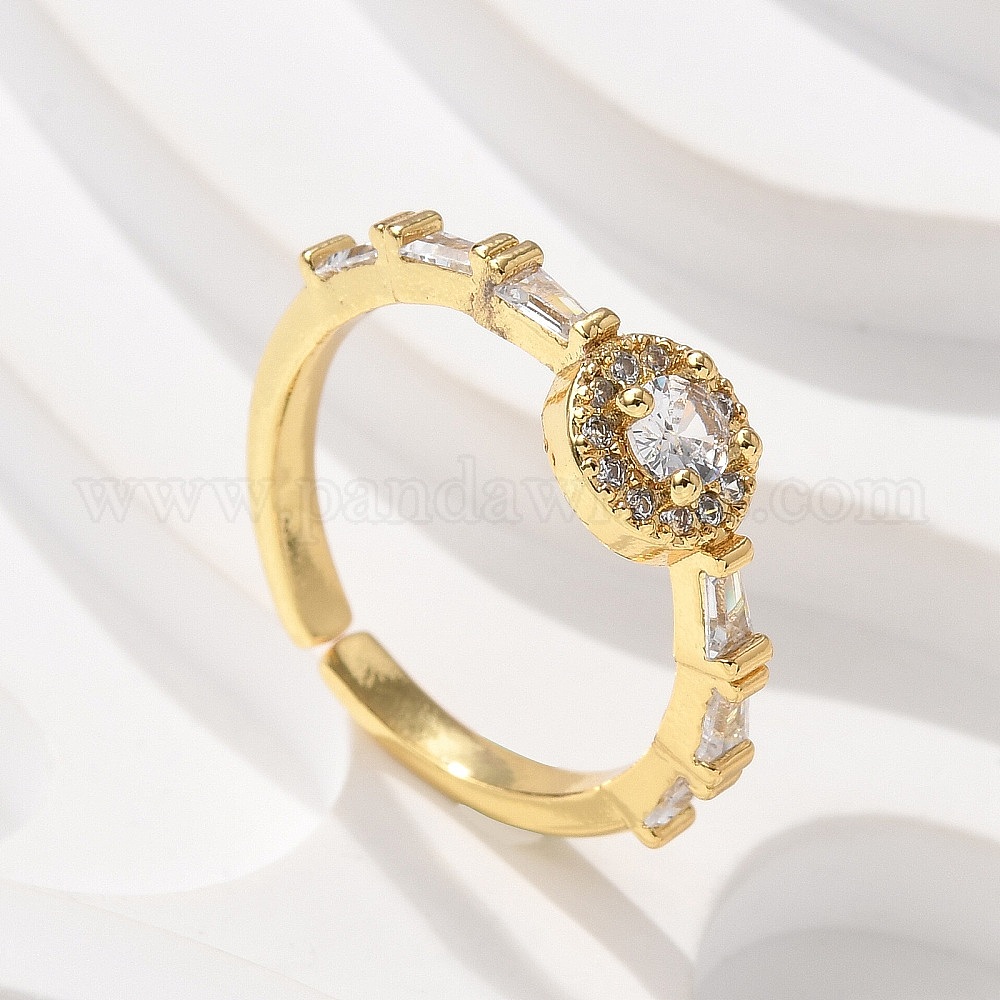 • Настоящее золото 18K Круглые латунные кольца-манжеты с микропаве из кубического циркония, без кадмия и без свинца, реальный 18 k позолоченный, 6.5 мм, внутренний диаметр: регулируемый