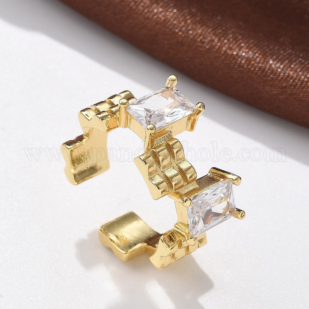 Кольца-манжеты из латуни с микропаве, прозрачные кубические циркония, без кадмия и без свинца, прямоугольные (031K7J)