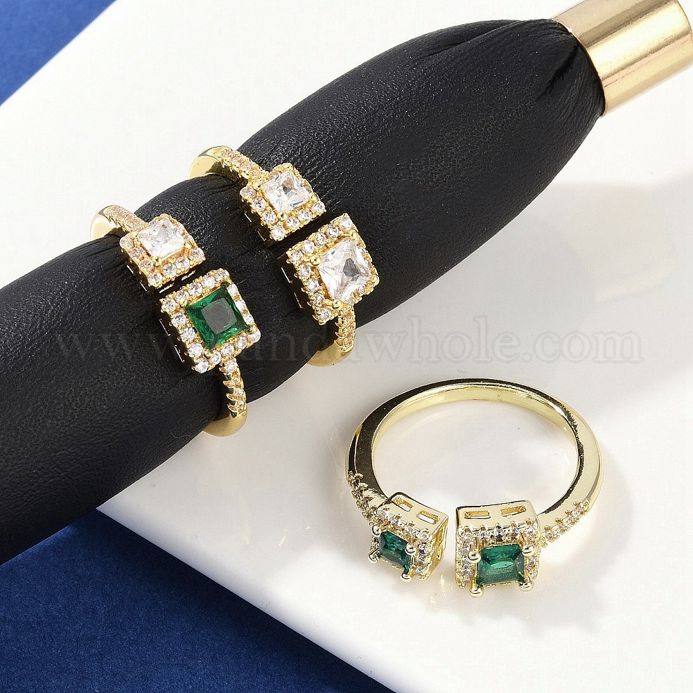 Латунные микро проложить манжеты кольца кубического циркония, без кадмия, без никеля и без свинца, прямоугольные стеклянные открытые кольца, реальный 18 k позолоченный