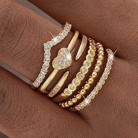 6 шт 6 стили набор колец из сплава с микропаве из прозрачного кубического циркония для женщин, разнообразные
