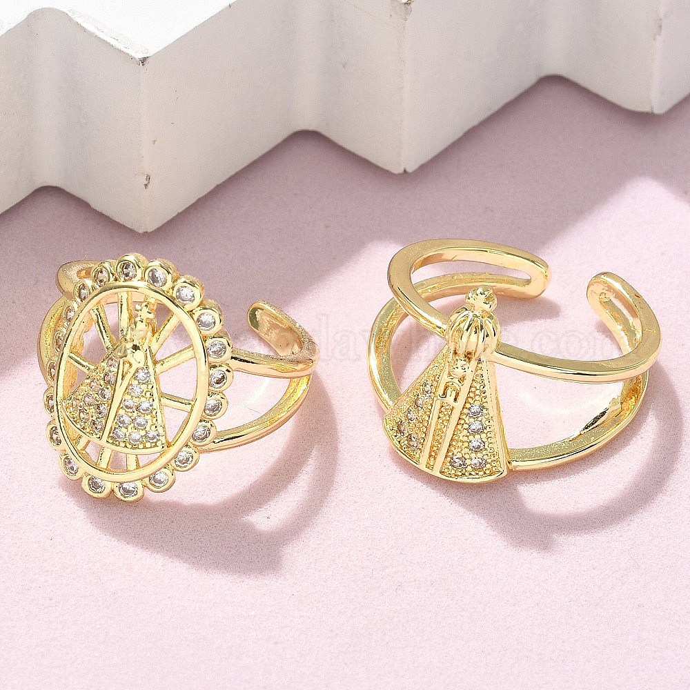 Латунные микро проложить манжеты кольца кубического циркония, Носа-Сеньора-Апаресида, реальный 18 k позолоченный (031Z4E)