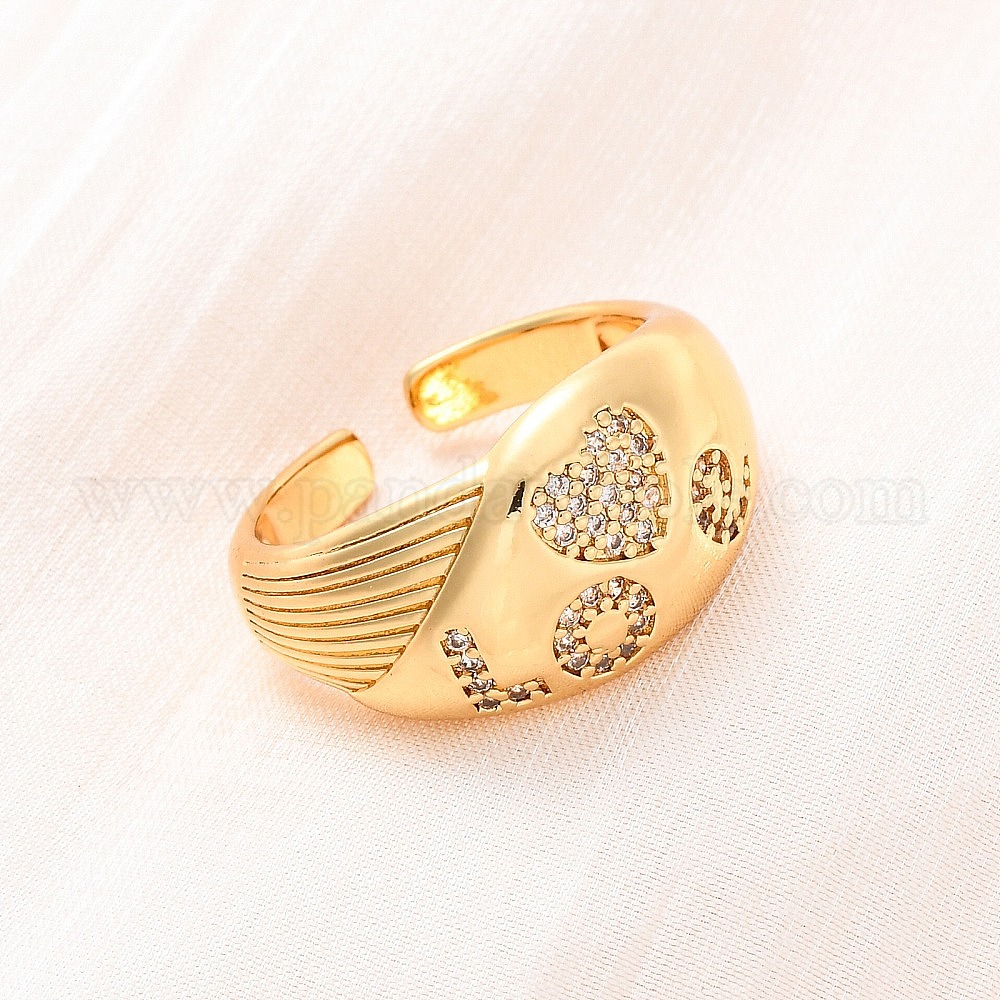 Латунные кольца-манжеты с микропаве и прозрачным цирконием для женщин, слово любовь и сердце, стойки покрытие, без кадмия и без свинца, прочное покрытие