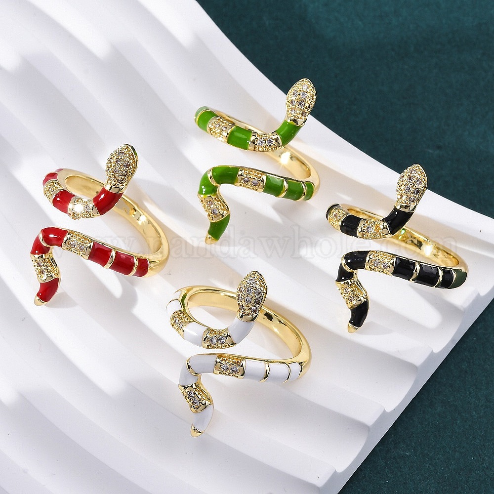 Латунные кольца-манжеты с микропаве и прозрачным цирконием для женщин, змея, с эмалью, стойки покрытие, без кадмия и без свинца, прочное покрытие, реальный 18 k позолоченный