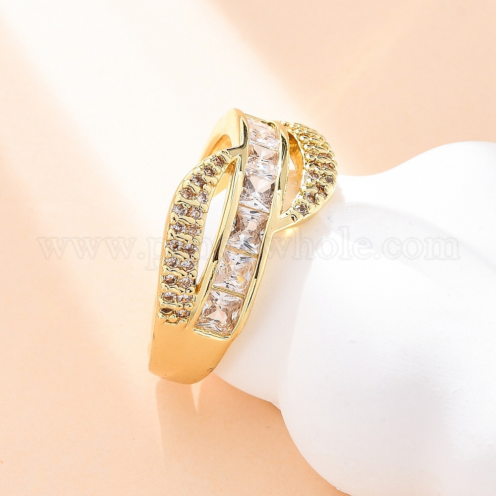 Кольца из латуни с микропаве из прозрачных кубических цирконий для женщин, Sqaure, стойки покрытие, без кадмия и без свинца, долговечный